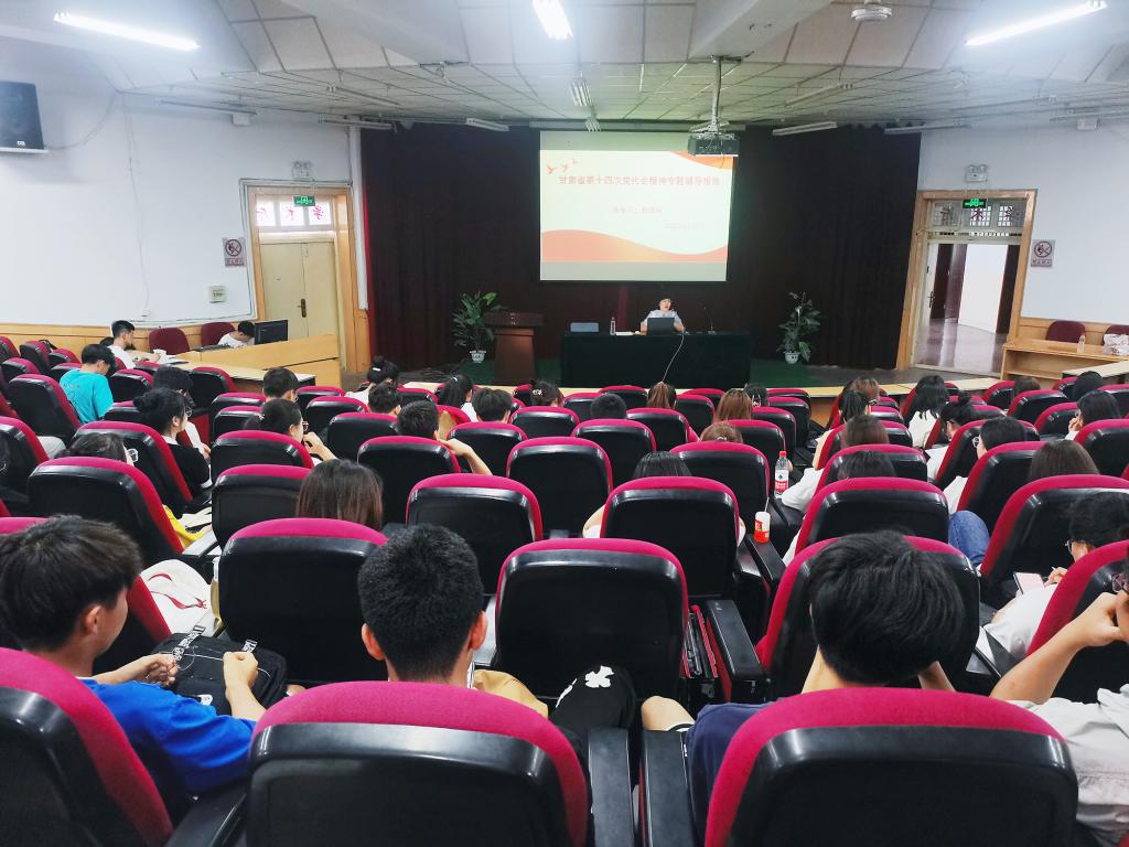 6月27日晚上,古天乐太阳集团城党总支负责人为全院师生作甘肃省第十四次党代会精神宣讲报告,公司师生共计400余人聆听了报告。