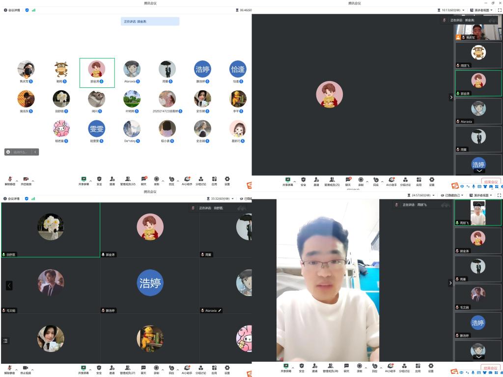 周鹏飞、郭金涛就英文自我介绍、英文问答、专业课问题、提前联系导师四个方面分别从不同的专业角度为同学们提供了全方位、实用性极强的建议与指导。田舒荔指导各位同学科学理性对待考研复试调剂,引导员工及时关注复试及调剂平台,第一时间掌握信息,需综合考虑个人成绩和录取情况,力争在复试中展现优势,争取机会。过程中,他们与同学们进行了连麦互动交流,不仅详细解读了复试的各个环节和要点还针对考生们提出的各类问题,给予了专业而详细的解答。此次线上指导让同学们收获颇丰,不仅增强了对复试的信心,还掌握了许多实用的技巧和方法。