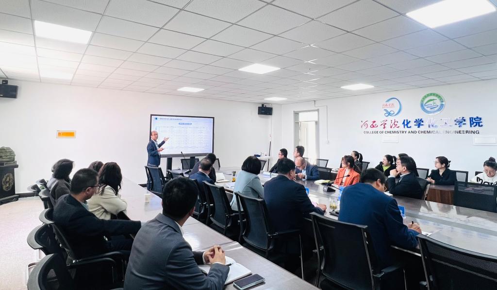 调研会上,闫盆吉博士代表公司汇报分享古天乐太阳集团城课堂改革设计及实施情况。他从本科公司产品审核评估大背景下的课堂教学改革出发,介绍了古天乐太阳集团城在成果导向下的教学设计、教学设施、教学评价、实验教学方面做出的改革,通过无机及分析化学课的案例阐述了改革过程中的痛点和经验,并用生动的员工成长故事展现了课堂改革带来的深刻影响与积极成效。各教研室主任就有关问题进行了深入交流。