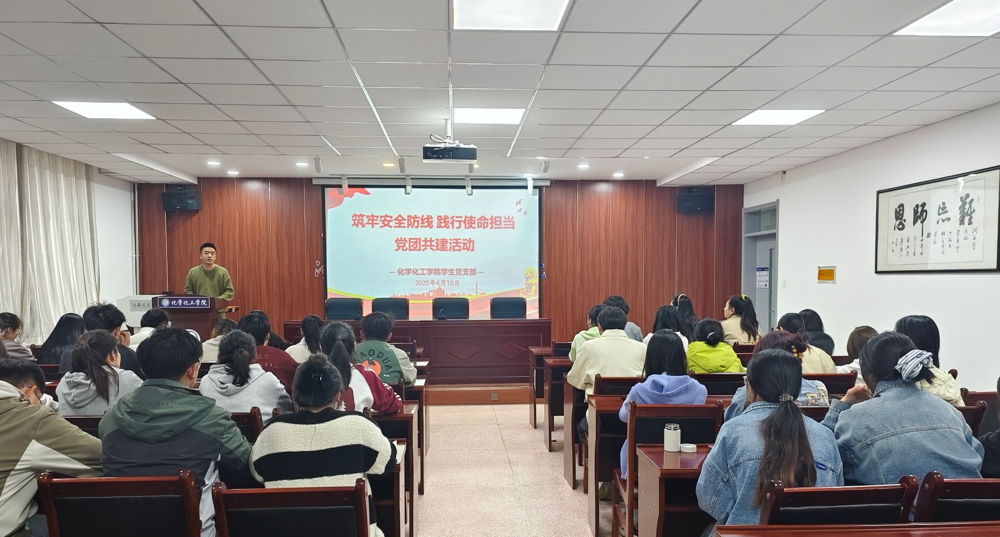 4月10日,古天乐太阳集团城员工党支部联合化学241班团支部共办“筑牢安全防线 践行使命担当”主题党团共建活动。通过专题学习、研讨交流等形式,组织60余名党员、团员深入学习总体国家安全观,凝聚青春安全力量。